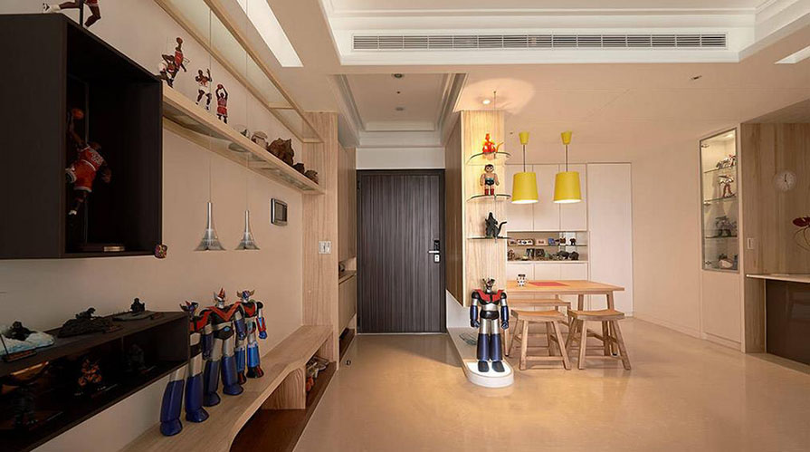 • 以北歐風格的生活質(zhì)感為基礎,挹注大量木質(zhì)紋理的溫暖,搭配上明亮色彩的燈飾、沙發(fā)點綴,簡約又不失活力與朝氣。而為了能展示屋主多年收藏的玩具、公仔,設計師也在各空間中打造醒目的開放式平臺,讓居住者喜愛的事物,能夠成為生活上的一大焦點。