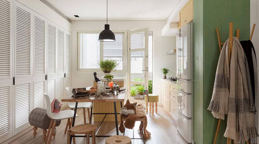 • 第二次換屋的屋主,對于鄉(xiāng)村風(fēng)格有著情有獨鐘的偏好。因此,設(shè)計師黃鈴芳保留下鄉(xiāng)村舒適的同時,透過仿飾漆為立面及柜體刷色,在原味里混入了繽紛色調(diào),鏤刻出了獨有的生活感。同時也悄悄增溫了時間與空間的記憶關(guān)系。 另外,原始格局中,客廳區(qū)塊有著惱人的西曬問題,不僅大幅降低了生活的舒適度,而且映入眼簾的僅有停車場的都市景象。綜觀房屋狀況后,馥閣設(shè)計巧妙地將客、餐廳空間對調(diào),轉(zhuǎn)而讓客廳擁有了社區(qū)中庭景觀。而西曬陽臺則改為洗衣空間,讓衣服擁有陽光曬過暖烘烘的味道,將生活美學(xué)和空間功能做了完美的平衡。
